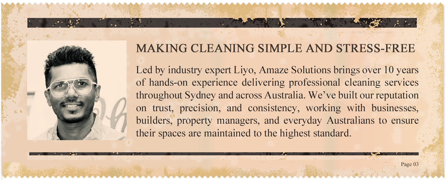 When it comes to maintaining a clean and healthy environment, the expertise of trusted cleaning professionals is invaluable. At AMAZE SOLUTIONS, we take pride in being more than just cleaners — we are the guardians of cleanliness and hygiene, dedicated to ensuring every corner of your space meets the highest standards.